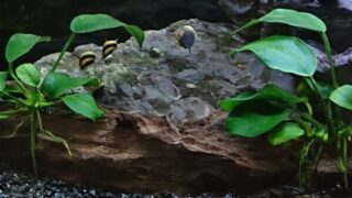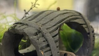 メスが卵をお腹に抱え、数時間後に水草や産卵床にくっつけます。